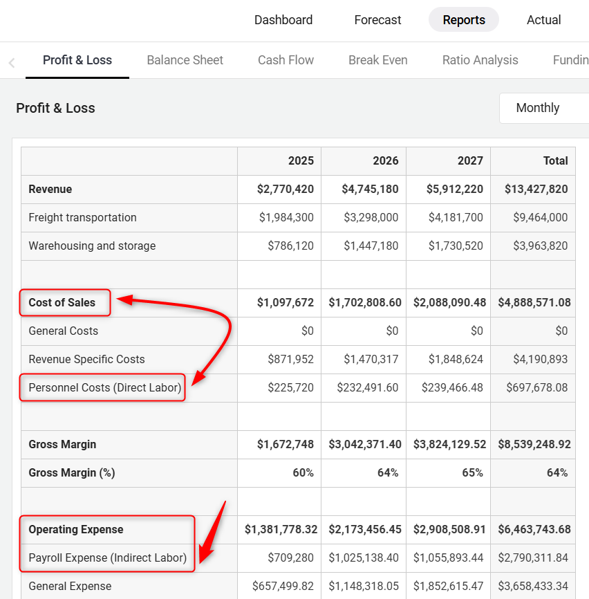 These labor costs are included in the Cost of Goods Sold (COGS), allowing you to analyze gross profit more accurately.