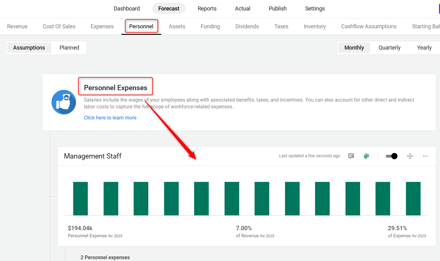 - Indirect labor includes salaries for administrative, support, or general business roles. These costs are entered under Personnel Expenses in the Personnel section. Since they are not directly linked to production volume, they impact your net profit but not COGS.