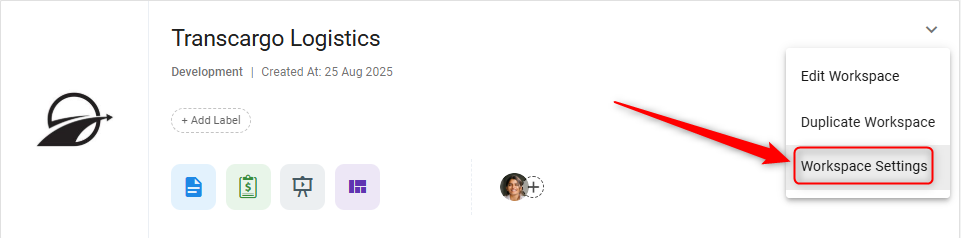 Select your preferred workspace and click on the Workspace Settings section from the workspace menu.