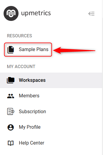 In your account, navigate to the left-hand sidebar, find the Sample Plans section under Resources, and click on it.