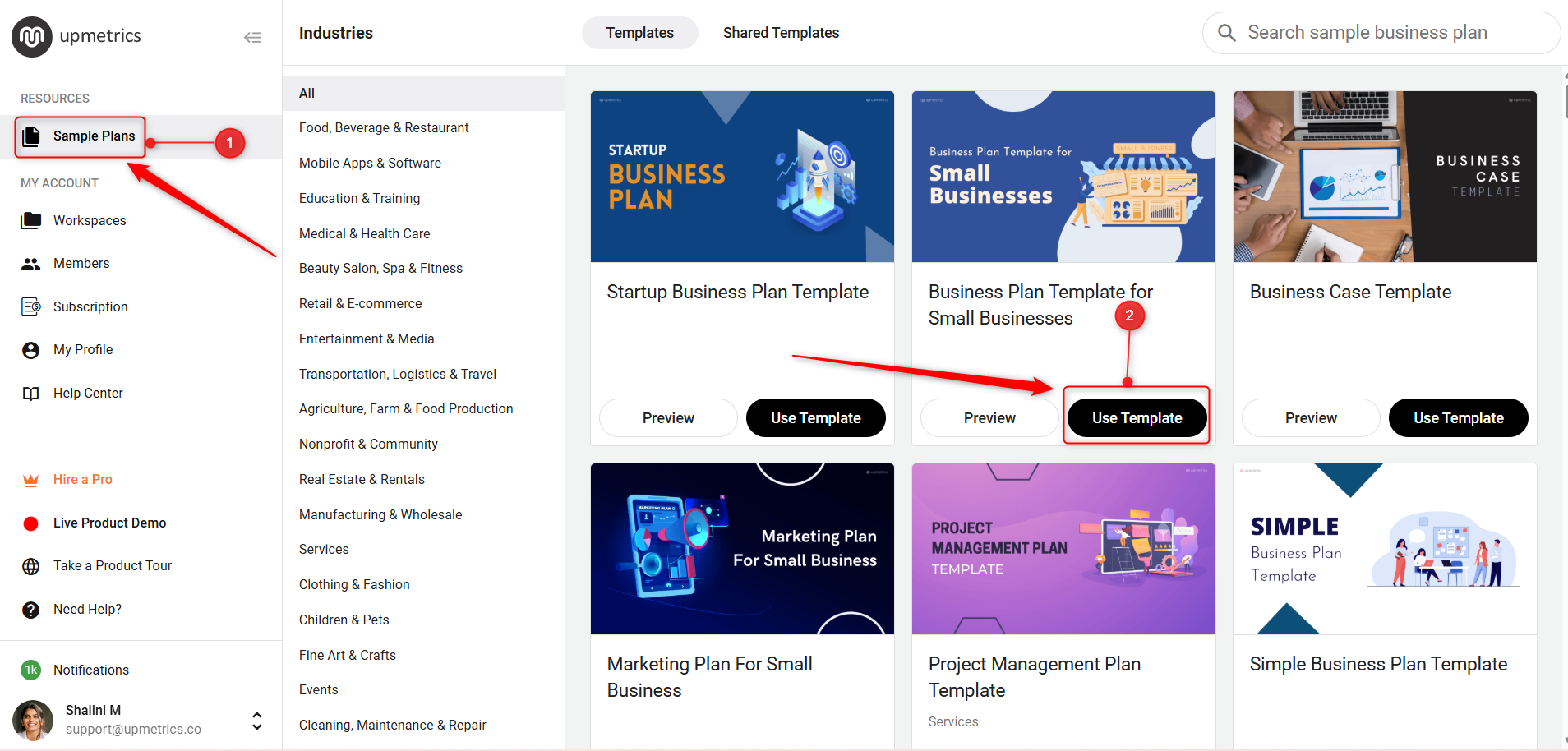 Browse through the available templates. Once you find your preferred business plan template, click on the Use Template option.