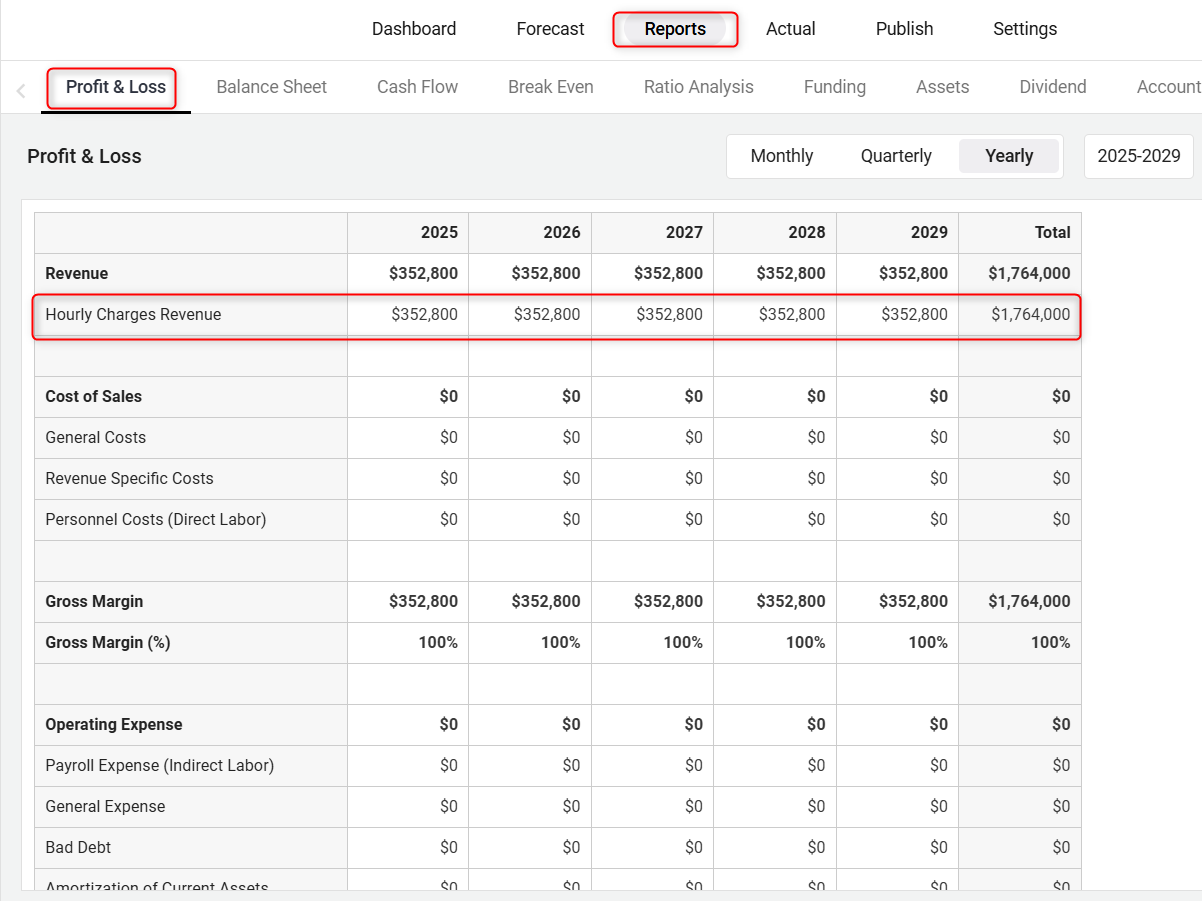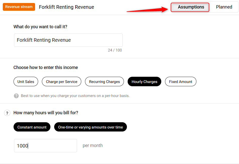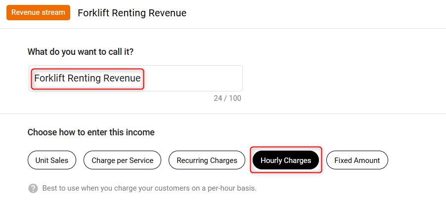 Are you going to charge your customers on an hourly basis? If your business offers any services on an hourly basis, you may want to use the Hourly charges revenue stream model in your forecast. Some examples include legal services, counseling, personal training, and music lessons. You might also use hourly charges if you run your own company but also subcontract or freelance for other businesses.