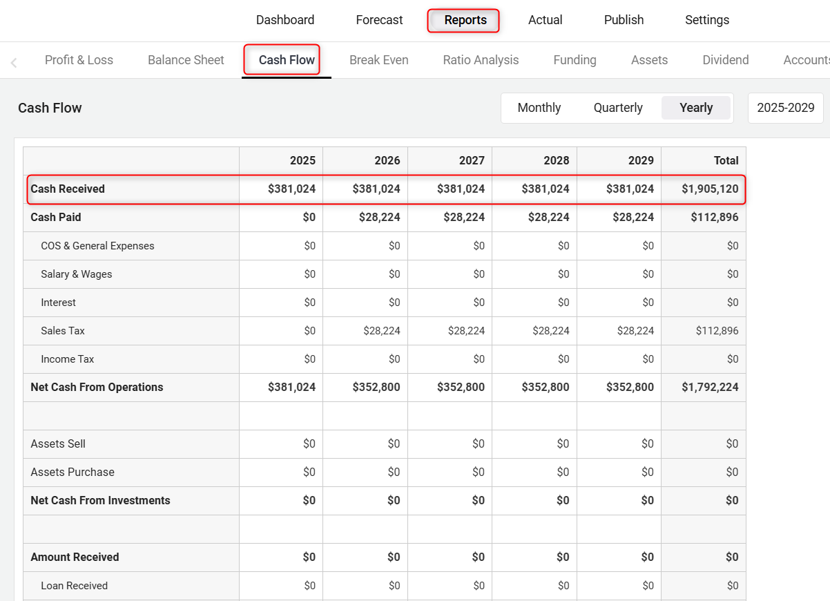 Your revenue streams will be used to calculate the highlighted lines in the Profit & Loss and Balance Sheet shown below:
