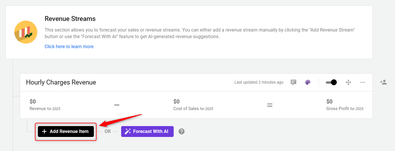 A forecast form will open. Here, add the name of the revenue stream.