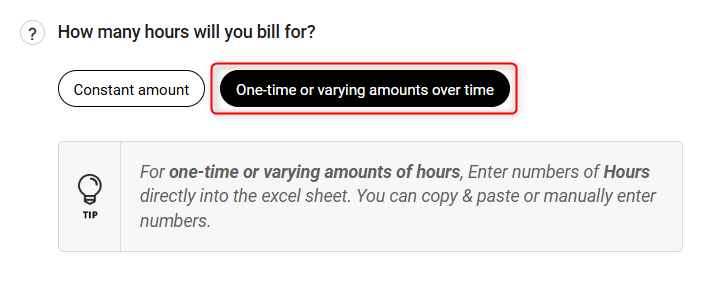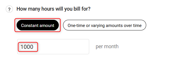 Customer Hours: Enter the number of hours of this service you think you'll provide. This can be either a constant amount per month or varying amounts.