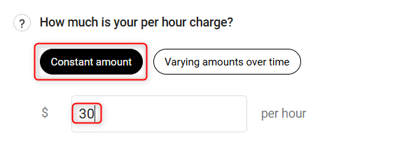 Price: Enter the amount you will charge for each customer of this hourly service. You can enter a constant price or varying prices over time: