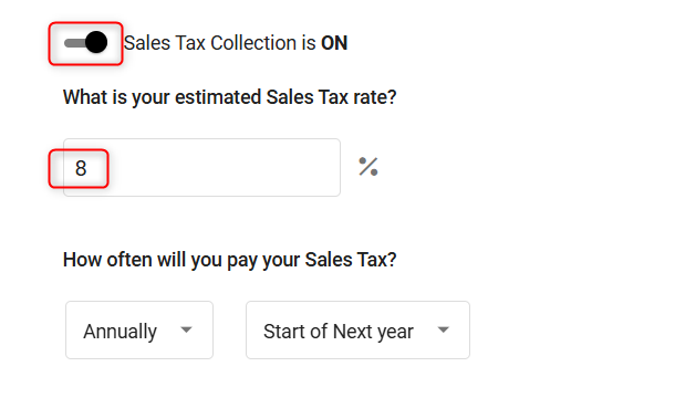 Enter the sales tax rate applied. The system will calculate your taxes and add them to the forecast automatically.