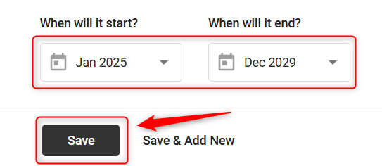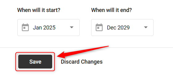 Start and End Date: Indicate when the revenue for this service charge sales stream will begin and finish. Click on Save.