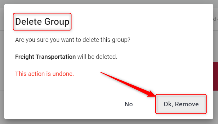 Confirm by clicking Ok, Remove in the Delete Group pop-up.