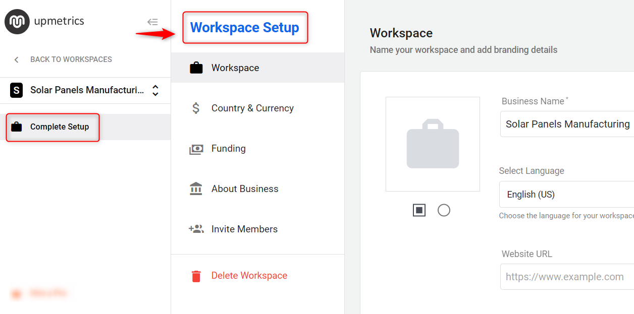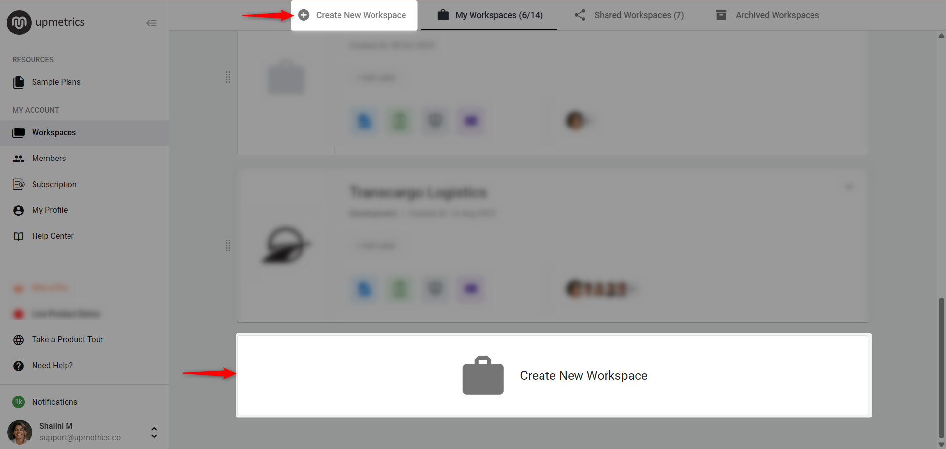 Log in to your Upmetrics account and go to Workspaces from the sidebar.