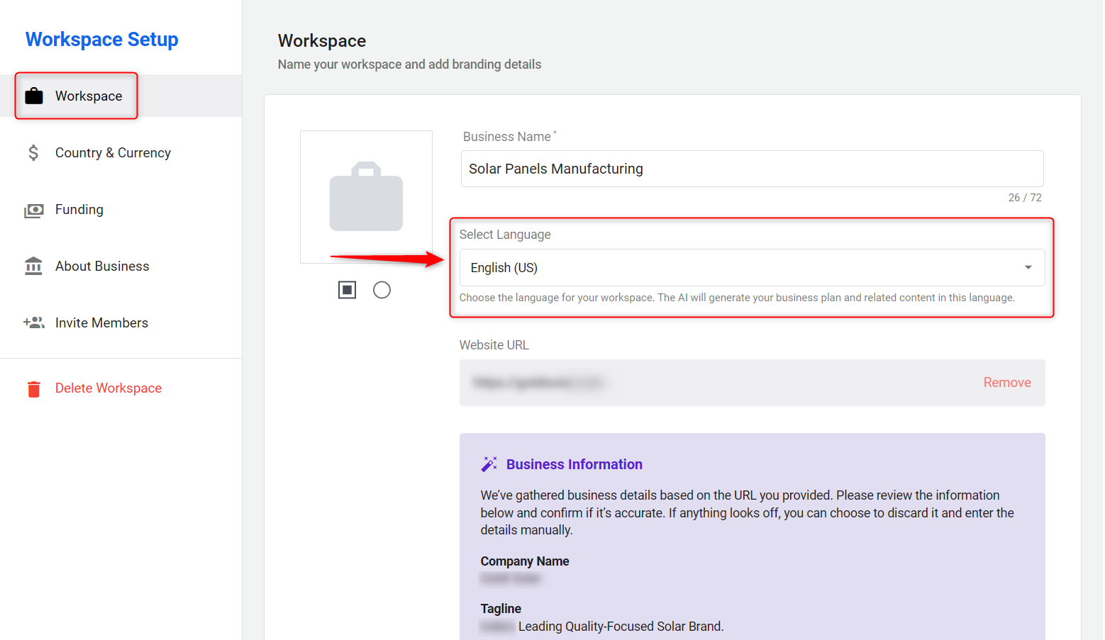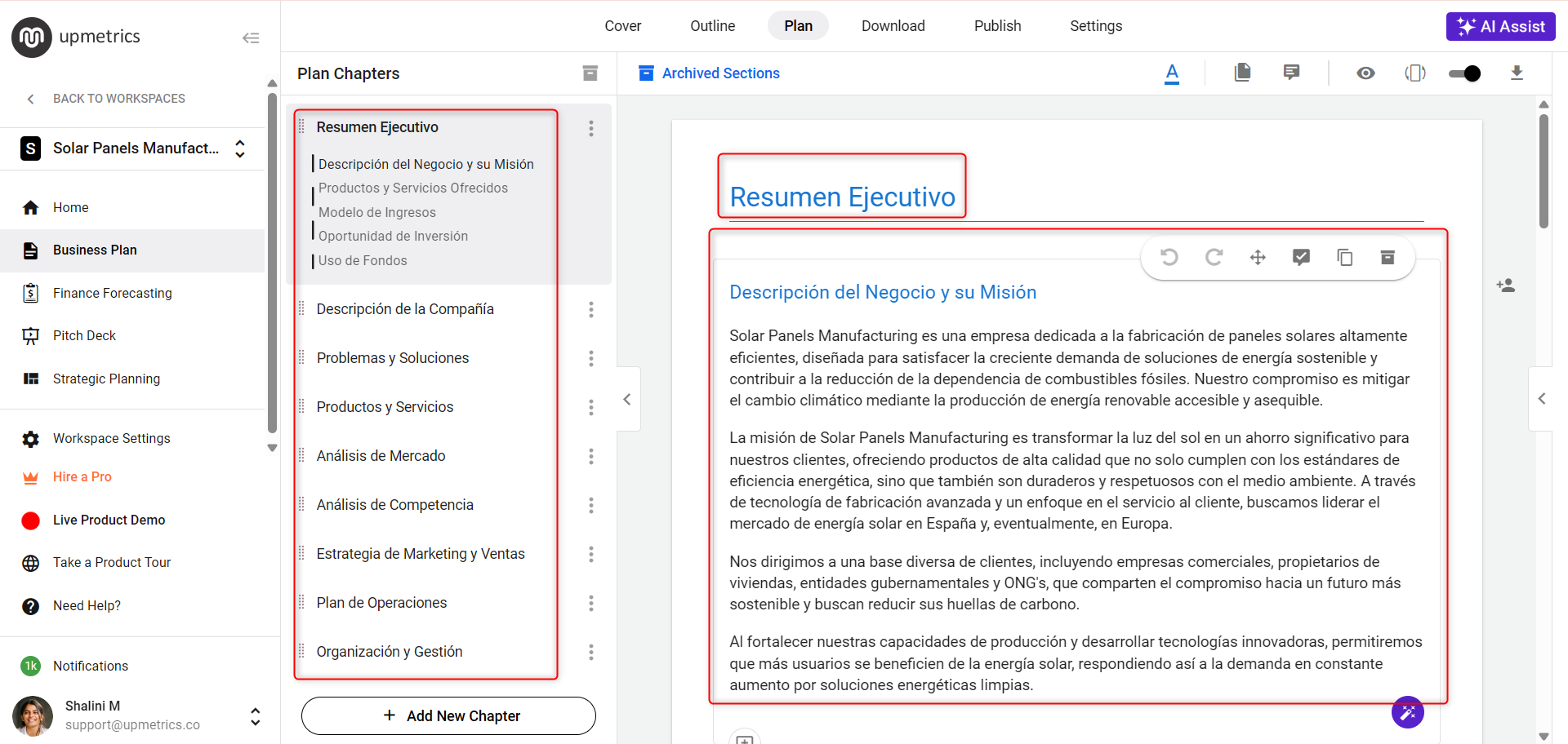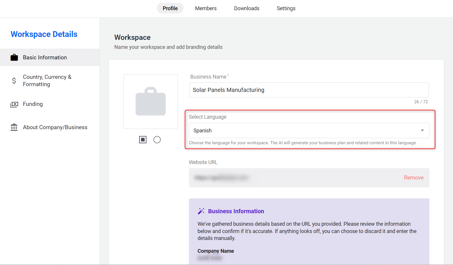 After processing, your business plan will be generated automatically in your selected workspace language.