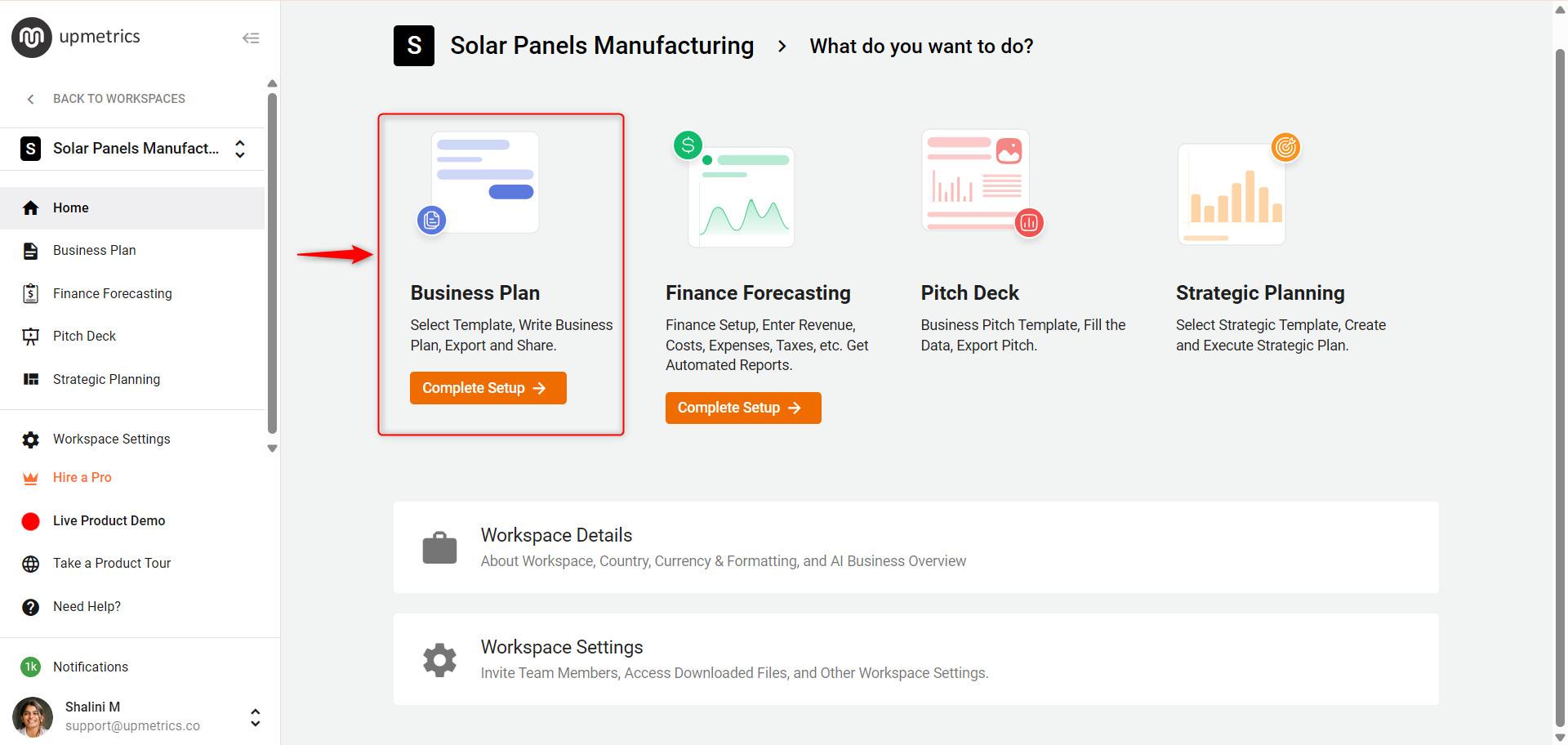 Complete the Workspace Setup and go back to the Home screen. Click on Business Plan Builder (Complete Setup).