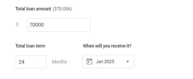 Enter the total loan amount, specify the term in months, and set the date you expect to receive the funds.