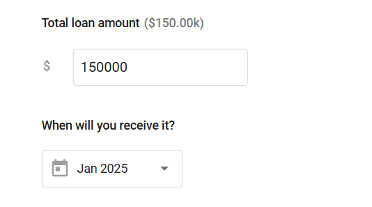 Enter the total loan amount and set the fund's receiving date.