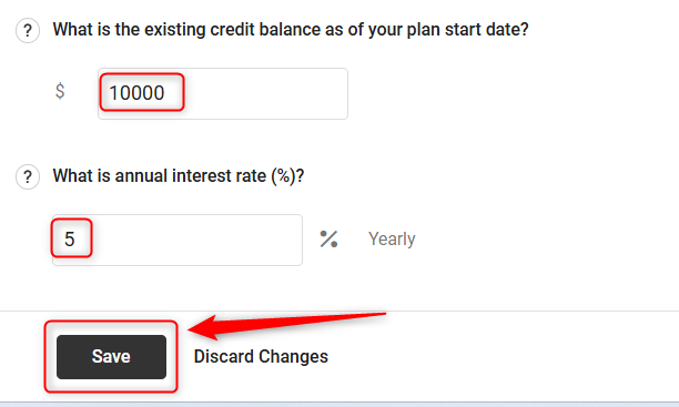 Indicate the starting balance on the line of credit as of the beginning of your forecast (if any) and enter the annual interest rate, then click on Save.