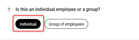 In the overlay that appears, select whether you're adding an individual employee or a group of employees: