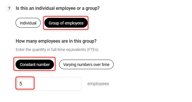 If you choose a Group of employees, enter the number of full-time equivalents (FTEs) you'll be hiring:
