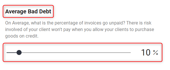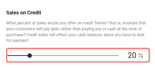 Adjust the Sales on credit slider to indicate the percentage of your sales that will be on credit: