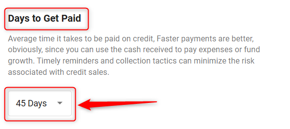 Use the Days to get paid slider to indicate how many days it will take you, on average, to collect on your invoices: