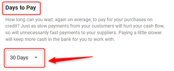 Adjust the Days to pay slider to indicate how many days, on average, it will take you to pay your bills: